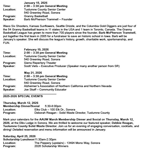 2026 AAUW Programs and Special Events